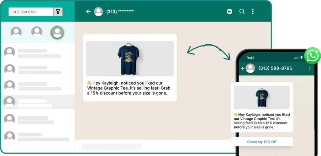 Continue using WhatsApp Business on your phone while managing team chats and automation on WhatChimp.